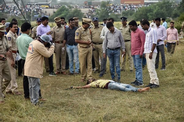 మరి? వాళ్ళు చేసింది మామూలు నేరమా? ఆ రోజు (నవంబరు 27) రాత్రి, షాద్ నగర్ వద్ద వెటర్నరీ డాక్టర్ ‘దిశ’ను ఎత్తుకు వెళ్ళి, అత్యాచారం చేసి, హత్య చేసి, తగులబెట్టారు. ఇంత నీచమైన నేరం చేసిన ఆ నలుగుర్నీ (ఆరిఫ్, శివ, నవీన్. చెన్నకేశవుల్నీ) పదవరోజు (డిశంబరు6) తెల్లవారు ఝామున వారిని పోలీసులు తమ ‘ప్రాణరక్షణార్థం’ ‘ఎదురు కాల్పులు’ చేశారు. ఫలితంగా ఆ నలుగురూ పోయారు.